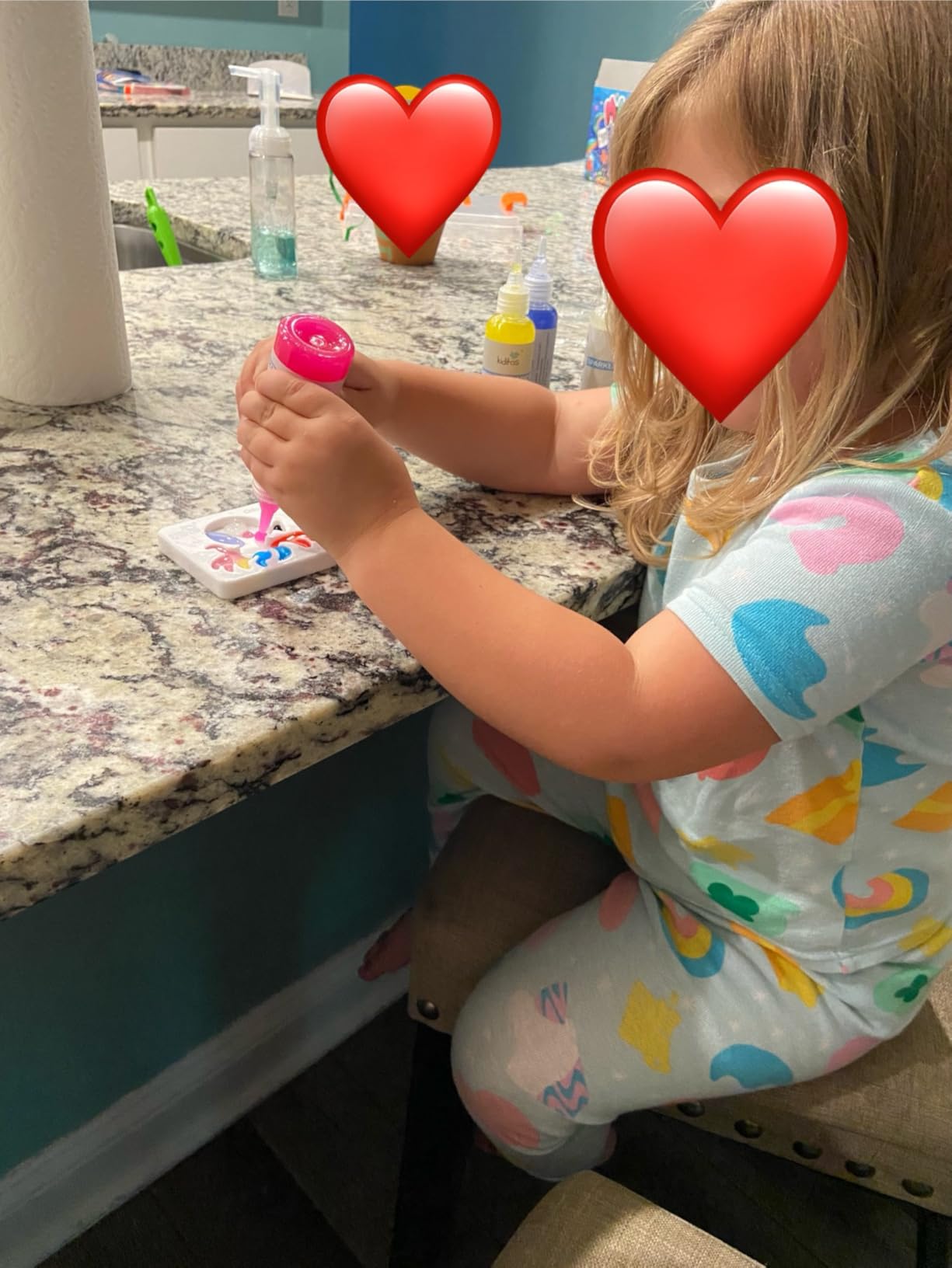 "This was a perfect quiet-time activity before bed. My little one had so much fun squeezing the colors into the molds. She kept showing me each new design with so much excitement!"